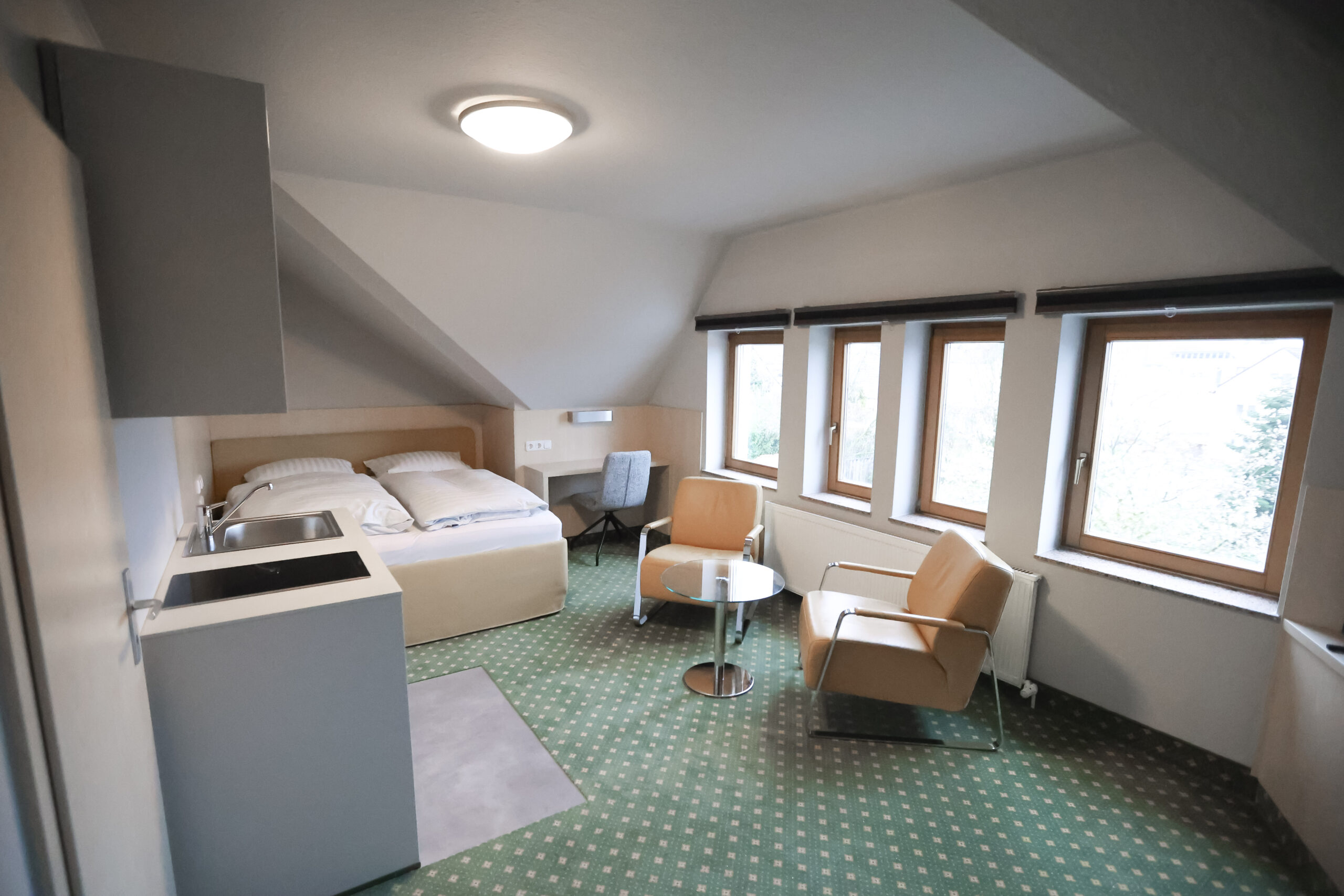 Die 7 Standard-Apartments sind ideal für 1 Person und bieten eine komfortable, voll möblierte Wohnlösung ohne Pantry-Küche.